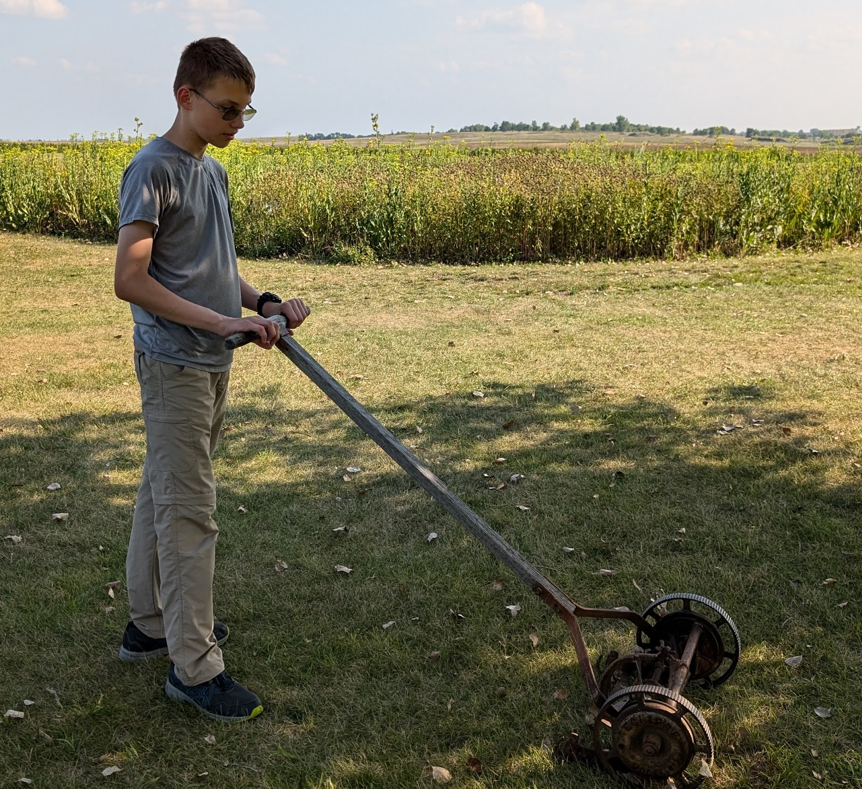 Dexter then tried out the push lawnmower (rotary style) and found it to be enjoyable.